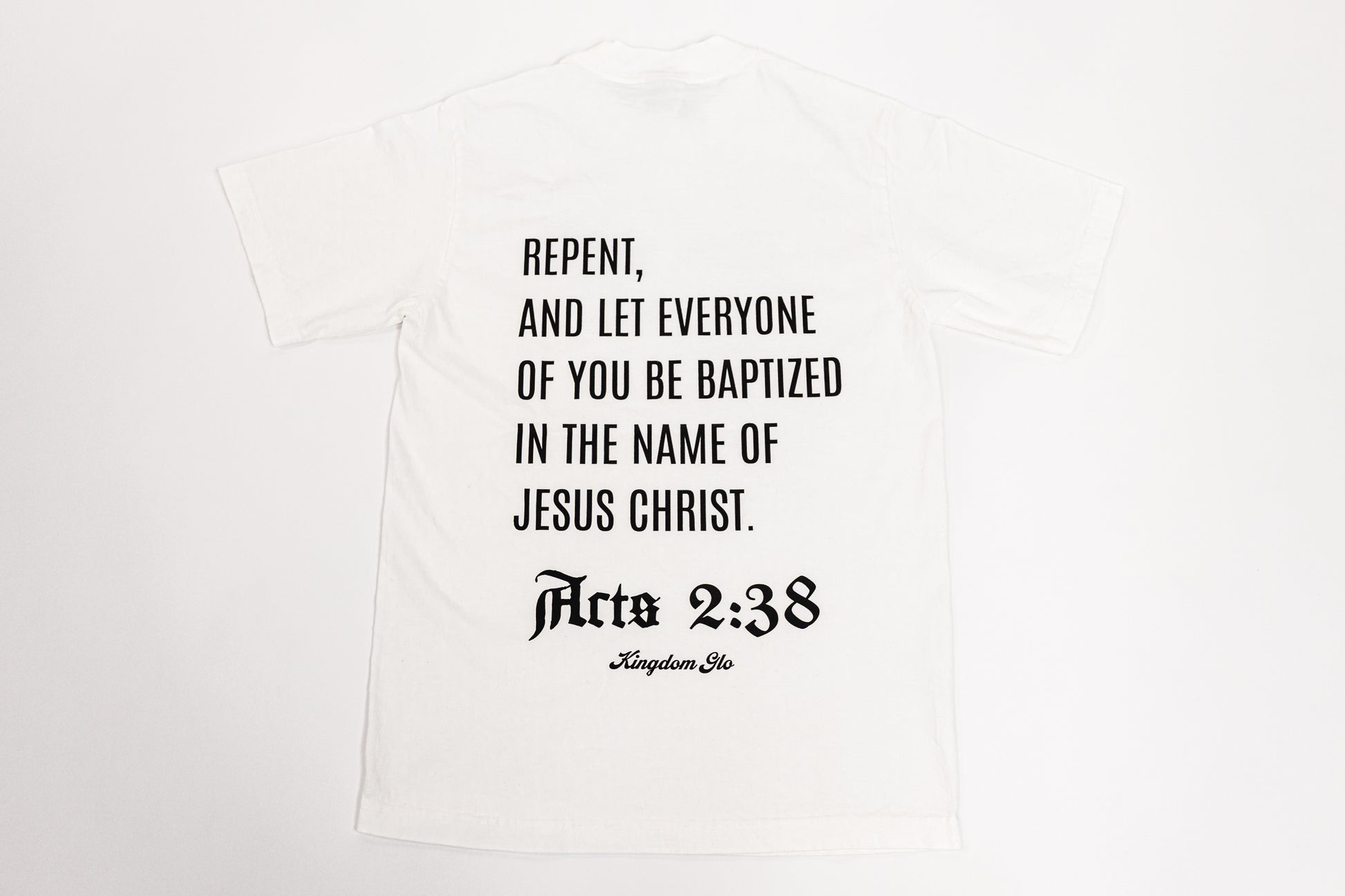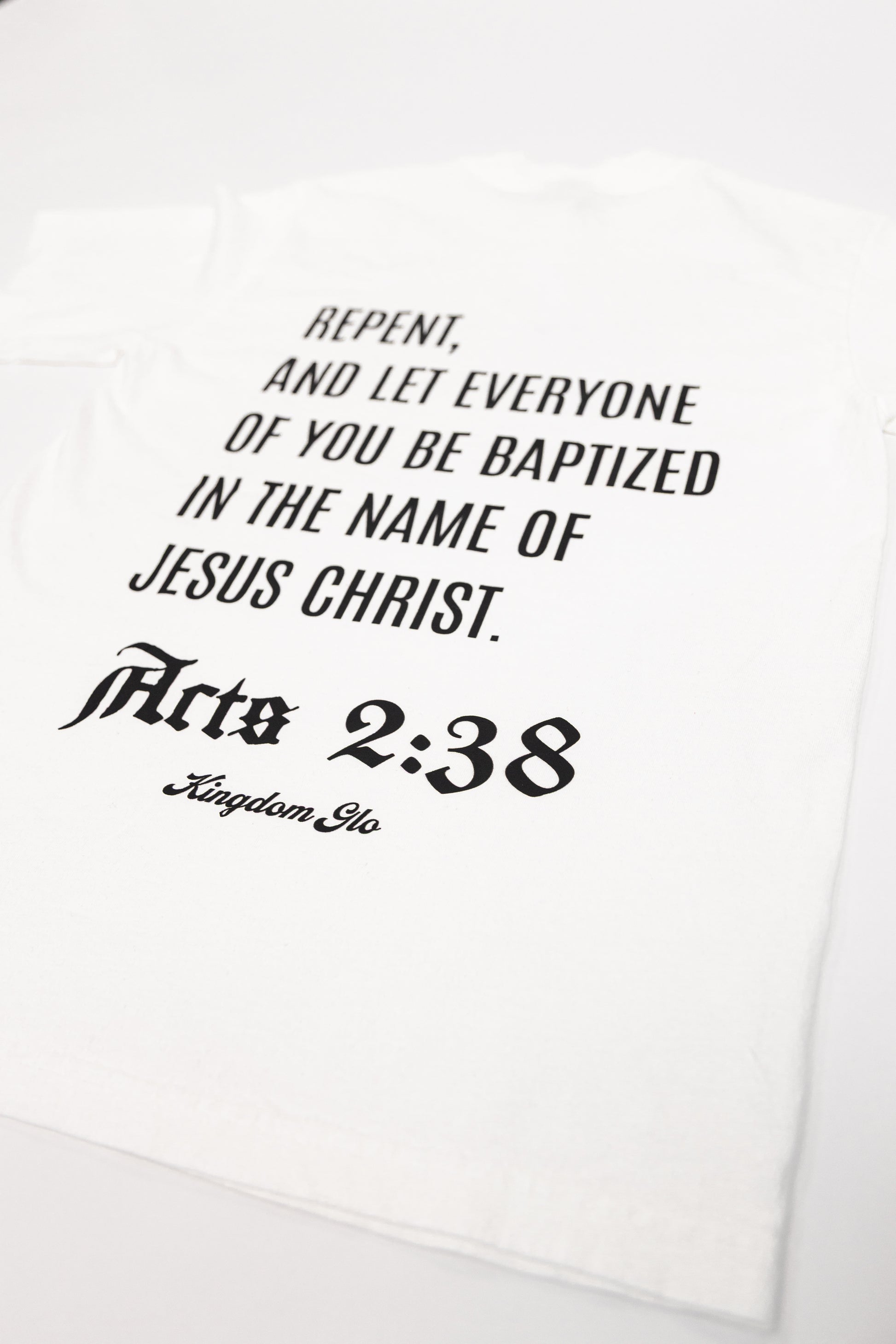 Share the importance of repentance and redemption through Christ Jesus with our Acts 2:38 Tee.